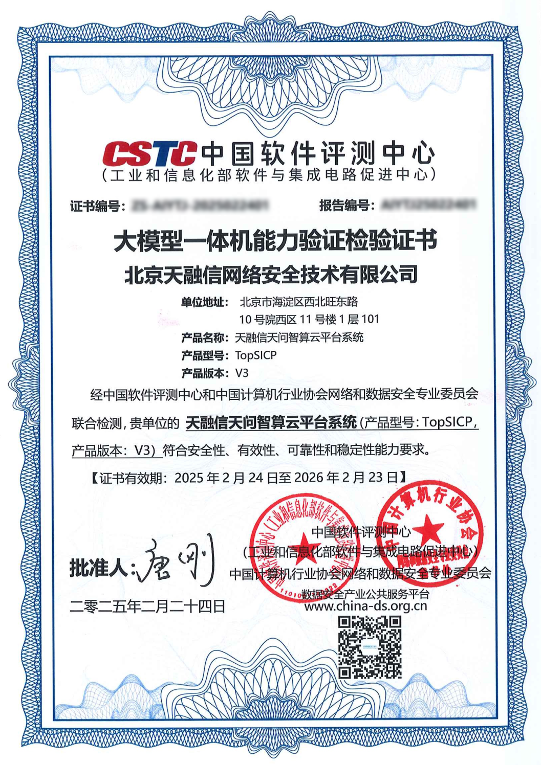 相关阅读1、开箱即用!天融信发布DeepSeek安全智算一体机2、天融信:DeepSeek行业应用加速,大模型安全“短板”亟待补齐!3、DeepSeek加速AI变革,浅谈大模型安全的冷思考和新实践4、天融信:离线天问大模型接入DeepSeek,安全大模型本地化全面提速